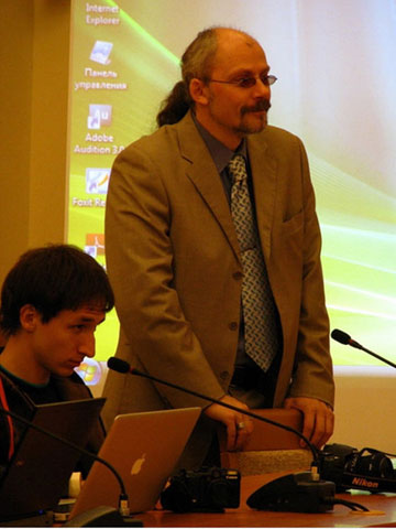 Юрій Намєсніков зробив доповідь про Бот-нети. Бот-нет – це комп’ютерна мережа, що складається з декількох хостів із запущеними на них ботами – автономним програмним забезпеченням. Вони таємно встановлюються на комп’ютер та використовують його в своїх цілях, а саме: розсилають спам, крадуть персональні дані, блокують роботу комп’ютера тощо. Виявити головний командний центр при такій схемі розповсюдження надзвичайно складно. Доповідач запропонував аудиторії поміркувати над шляхами вирішення цієї проблеми.