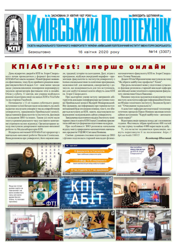 Оприлюднено 14 номер щотижневої університетської газети "Київський політехнік" за 2020 рік