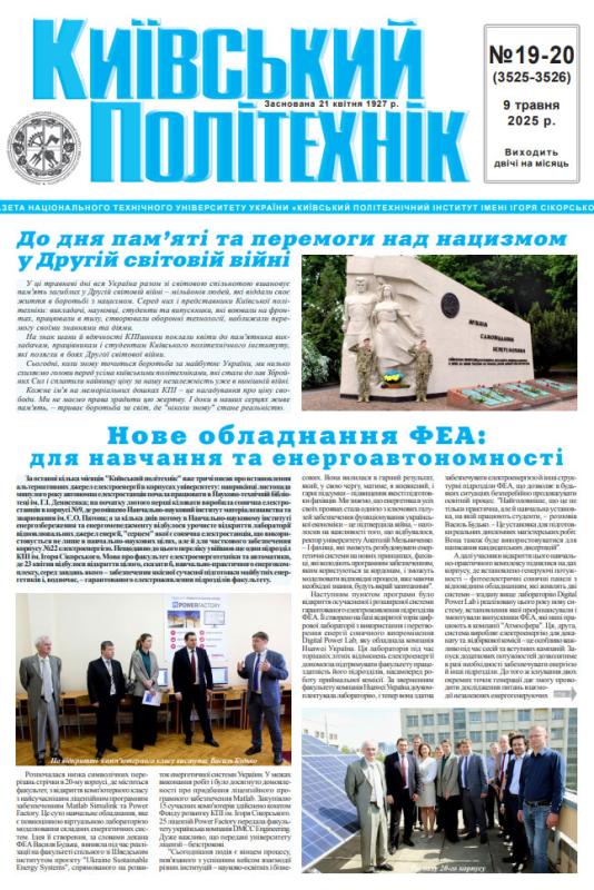 Вийшов 19-20 номер газети "Київський політехнік" за 2025 рік