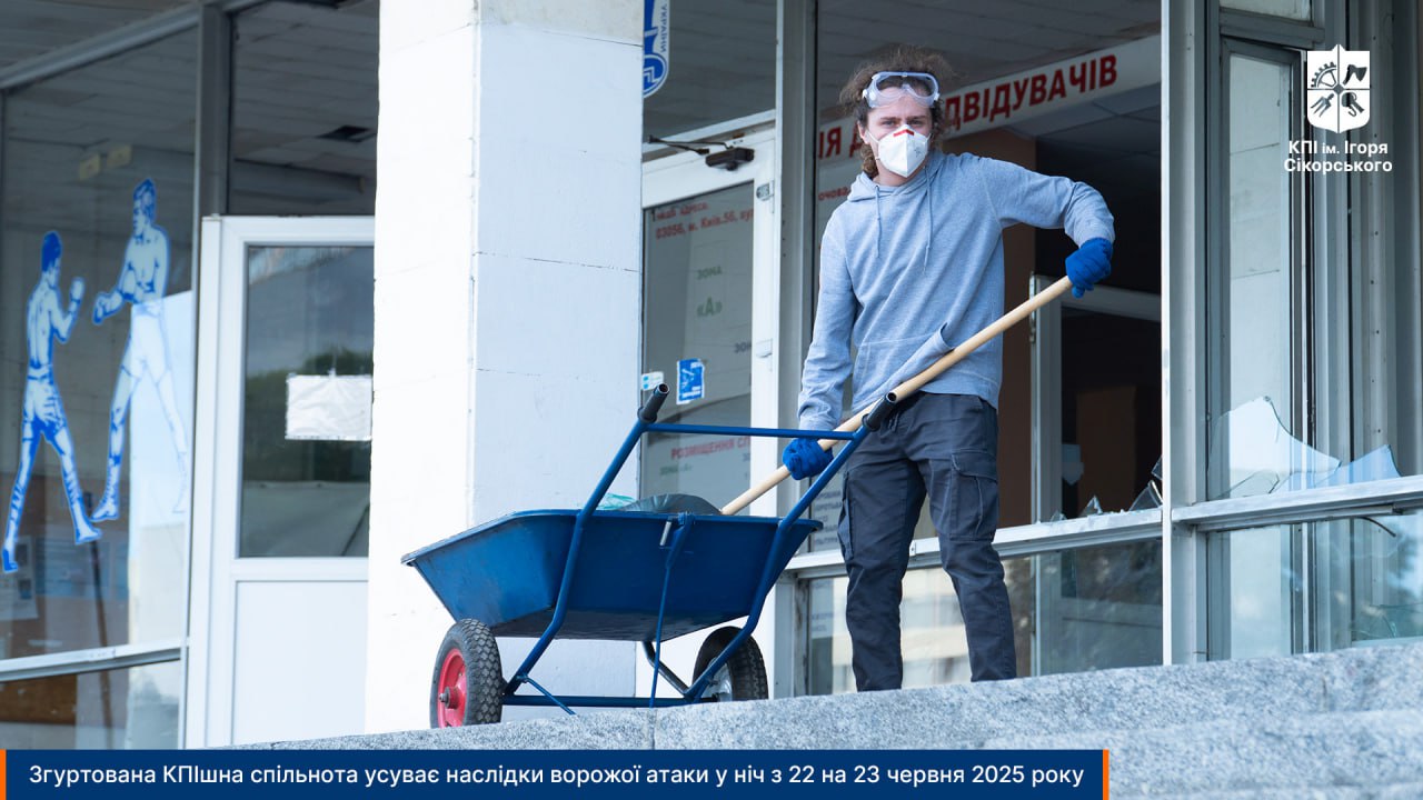 The KPI community is once again demonstrating its unity! Need examples? On the night of June 17, 2025, Kyiv suffered another massive combined attack by enemy drones, cruise missiles, and ballistic missiles, resulting in many casualties and, unfortunately, deaths. During this attack, buildings and structures of Igor Sikorsky KPI were damaged, in particular, the historic building of educational building No. 4, dormitories, and the Scientific and Technical Library of Igor Sikorsky KPI. However, the insidious enemy did not calm down. On the night of June 22-23, 2025, Kyiv experienced another drone and missile attack from the Russian Federation. As a result, the Igor Sikorsky KPI campus suffered significant damage. Enemy fire damaged several academic buildings, four dormitories, and the Sports Complex. There were no casualties. Thus, within one week—June 17 and 23—the university campus was hit twice.