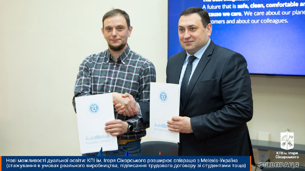 The memorandum signed on May 14 defines the main goal of the partnership as consolidating the efforts of its participants to develop effective cooperation, particularly in the educational, scientific, and scientific-technical spheres, and its main areas of focus: organizing and conducting joint educational and scientific events, involving company and university employees as experts and speakers during joint seminars, meetings, and round tables; involving KPI teachers and students to participate on a contractual basis in scientific research work conducted by “Melexis-Ukraine”; possible performance on a contractual basis by university researchers of scientific research, experimental design and other types of scientific work (services) at the request of the company; facilitating the development and integration of the latest digital technologies into the educational process, etc.